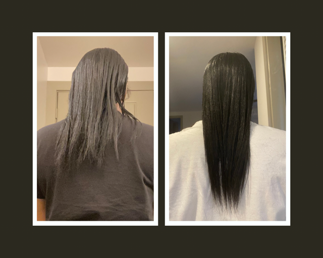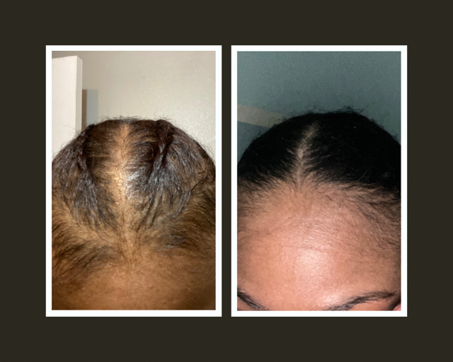 “Yeah, that’s me. I bet you’re wondering what happened. Thought this was the oil my daughter uses on her braids. Little did I know it was a hair growth oil. Three weeks later, my hair looked like this. ”